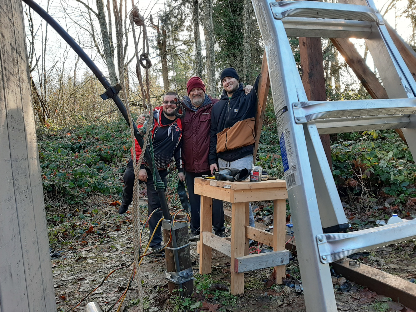 Rick called me to say that the pump stopped pumping. I went to his house and saw that Julie had pulled the main circuit fuse box in the pump house. There was a heater plugged in, which is tapped to half of the 240 volt supply. I measured the resistance values as follows, and when all looked fine, turned on the main circuit breaker and immediately heard the pump running, and the pressure gauge began to raise. Went inside the house and the water was running fine.